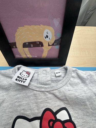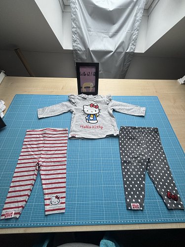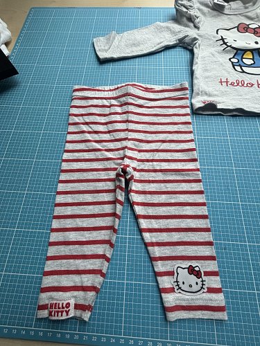 Ein 3-er Set, bestehend aus Pullover und 2 Hosen mit süßem Aufdruck von „Hello Kitty“ Leider nicht oft getragen, daher ist der Zustand noch sehr gut. Größe ist mit 62/68 angegeben. Nichtraucherhaushalt + Hund