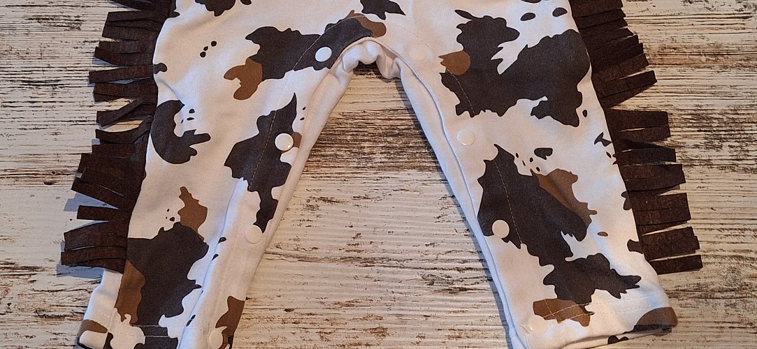 Biete hier diesen zuckersüßen Strampler für kleine Nachwuchs-Cowboys an! Ein absoluter Hingucker mit Kuhfell-Print, braunem Latz und coolen Fransen an den Seiten. Perfekt für Fotoshootings oder einfach für den besonderen Auftritt im Alltag. ​Details zum Artikel: ​Größe: 68 (6-9 Monate) ​Design: Western-Stil mit Cow-Print und Fransen ​Material: Angenehmer Mix (95% Baumwolle, 5% Polyester) ​Zustand: Gebraucht, einmal getragen aber gut erhalten ​Praktisch: Druckknöpfe im Schritt für einfaches Wickeln Versand & Bezahlung ​Versand: Gegen Aufpreis möglich (z. B. als günstiger Großbrief oder Warensendung) ​Bezahlung: Gerne per PayPal Freunde. Rechtliches ​Dies ist ein Privatverkauf, deshalb keine Rückgabe möglich. Der Verkauf erfolgt unter Ausschluss jeglicher Sachmängelhaftung.