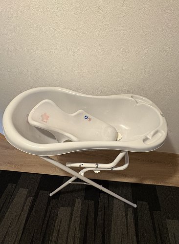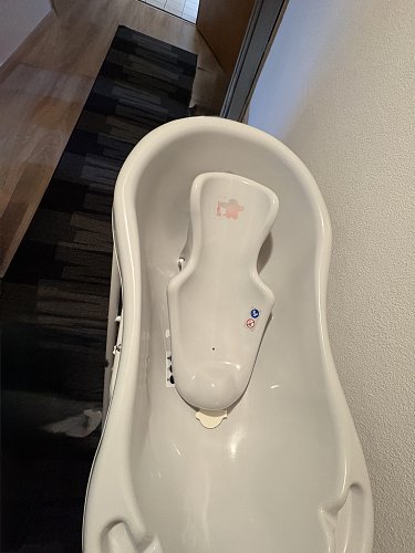 Ich verkaufe eine Babywanne inkl. passenden Gestell und zwei Einsätzen. Badewanne ist von HylatBaby (die Marke gibt es hier nur nicht). Ein Einsatz gehört zu Badewanne und wurde noch nie genutzt und die Hängematte wurde separat gekauft und passt super in die Badewanne. Perfekte wenn die Babys wie unsere Tochter zappelt beim Baden und fast nicht gehalten werden kann :) Badewanne ist fast 4 Jahre alt so wie der Einsatz die Hängematte ist 3,5 Jahre alt und das Gestell fast ein Jahr alt. Durch putzen der Badewanne ist leider ein kleines bisschen von dem Gummi in der Badewanne weg gegangen. Sie ist aber deswegen dennoch einwandfrei genutzt werden. Die Temperaturanzeige hilft gerade am Anfang ohne Thermometer die perfekte Wassertemperatur zu finden.