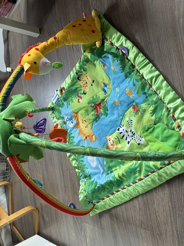 Sehr selten benutzte Babyspieldecke mit Aktivitätsbogen der Bogen spielt Musik und kann leuchten.