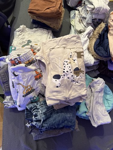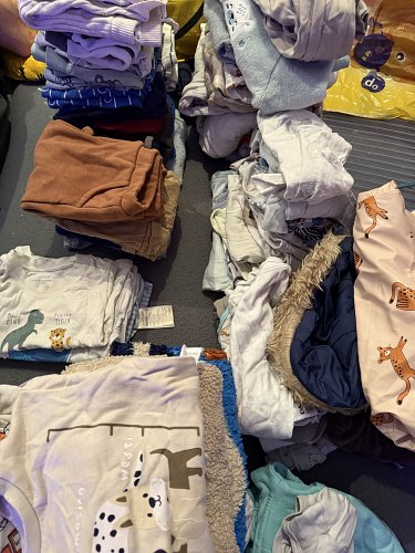 Hallo, Verkaufe hier 2 Kisten volle Babykleidung. Für Jungs! Die Größen sind von 68-86 dabei. Verschiedene Klamotten. Tshirt Bodys Pullover 2er Sets Ganz viele Hosen & Jeans und Jogging Mützen Strampler Und vieles mehr. Vieles habe ich abfotografiert. Es ist ganz viel von Disney dabei Micky Maus und Winnie pooh. Ganz viele Jacken, i love Dad Tier Jacke blaue Jacke. 3 schneeanzüge sind ebenfalls dabei. 2-3 kleine Spielzeuge Rassel auch dabei! Bodys lang und kurz dabei 2 Westen von Winnie Poph co auch dabei. Einen Anzug braun ist auch dabei. Hose & Hemd. Wichtig: ich verkaufe es nur als Paket! Keine Einzel! Die Sachen müssten gewaschen werden da sie in Kisten lag. Insgesamt müssten es 60 Teile sein oder sogar 70! Abholung in Duisburg, gerne gegen Aufpreis auch Versand. Wir würden gerne dafür 50€ noch haben da es sehr viel ist von Disney H&M c&a