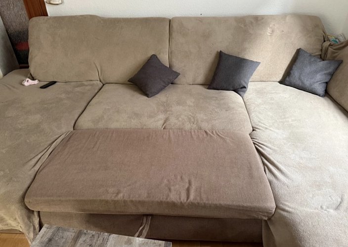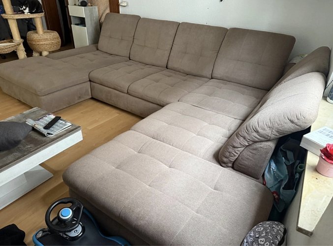 Die Couch wurde ausschließlich nur mit Decken verwendet daher noch in einer sehr sehr sehr guten Zustand Rückenlehnen kann man nach vorne und wieder nach hinten verstellen. Wie ihr auf den Bilder auch sehen könnt ist Staudamm dabei so wie eine schlaffubnktion Neu Preis lag bei 4000 Euro hätten gerne noch 800 Euro. Da wir umziehen müssen wir Leider unsere geliebte Couch verkaufen. Auf dem letzten Bild ist elne Zeichnung Die Rückenlehnen sind nicht eingezeichnet (bis auf Mittelteil). Die gestrichelte Linie weist du die ausziehbare Rückenlehne hin. Der Maßstab stimmt natürlich auch nicht aber die Maße stimmen. Nur Abholung. Die Couch muss spätestens bis Ende Dezember weg sein.