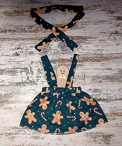 Ich biete hier ein super süßes und festliches 2-teiliges Set für Baby-Mädchen an, perfekt für die Weihnachtszeit, Nikolaus oder als Weihnachtsoutfit! ​Das Set besteht aus: ​Latzrock/Kleidchen: In dunklem Grün mit einem Allover-Print aus Lebkuchenmännchen und Zuckerstangen. Auf dem Latz ist zusätzlich ein großer, applizierter Lebkuchenmann aufgenäht. ​Stirnband/Haarband: Passend zum Kleid aus demselben Stoff. ​Details: ​Größe: 80/86 (ca. 12-18 Monate) ​Material: Vermutlich ein Mix aus Polyester und Elasthan (Stretch-Material). ​Zustand: Gebraucht, aber dennoch gut erhalten. ​Wichtige Informationen ​Bezahlung: PayPal ist möglich. ​Versand: Der Versand ist gegen Aufpreis möglich. ​Hinweis: Dies ist ein Privatverkauf. Deshalb sind eine Rückgabe sowie jegliche Sachmängelhaftung ausgeschlossen.