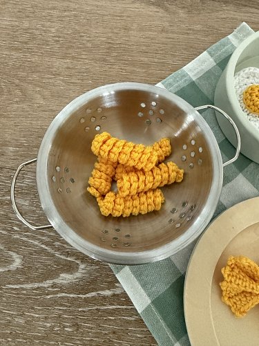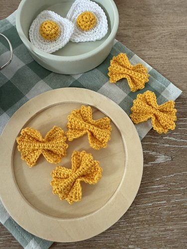 Gehäkelte Nudeln und Spiegeleier Kinderküche Kaufmannsladen Montessori Zubehör