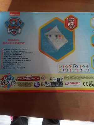 Bastelset zum Gießen und Bemalen von PAW Patrol Figuren. Das Set enthält Gipsmischung, Gussformen, 6 Farben, einen Pinsel und Bänder. Das Bastelset ist unbenutzt und noch verschlossen .