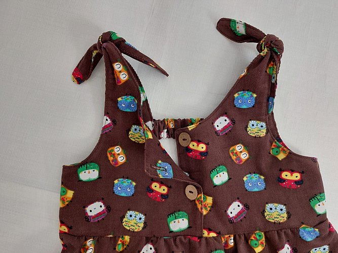Handmade Latzkleid Babycord Eulen Größe 104 neu