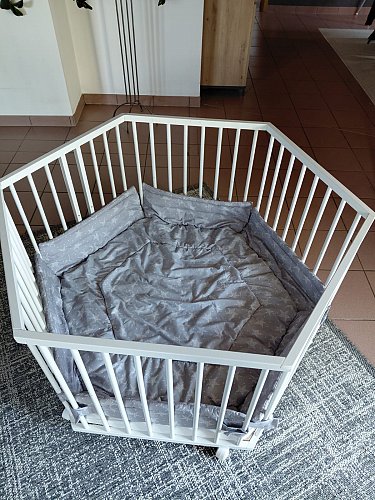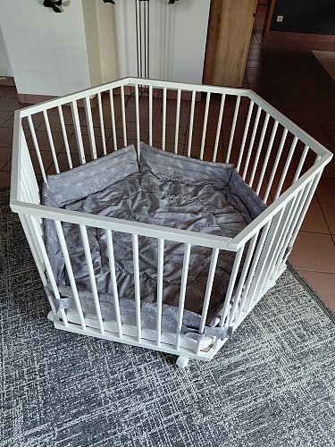 Verkaufe unseren Laufstall inkl Nestchen und einer Matratze diese ist ca 5cm Hoch und wurde extra dazu gekauft. Es ist nur gut angegeben da er natürlich Gebrauchsspuren am Lack aufweist.