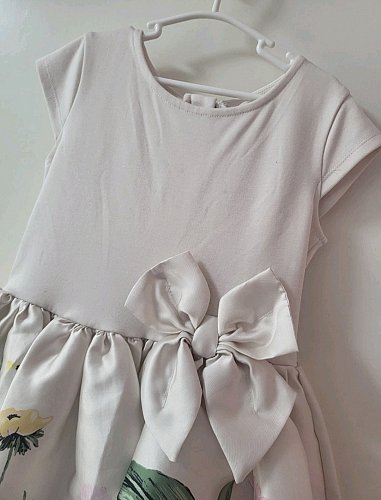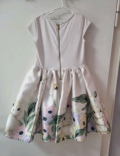 Verkaufe dieses zauberhafte Mädchenkleid von H&M in Größe 122/128. Das süße Kleid besticht durch: • Schlichtes rosa Oberteil mit großer Schleife • Rockteil mit niedlichem Blumen- und Häschenmotiv • Leichter Baumwoll-Mix - weich und angenehm zu tragen • Reißverschluss hinten für einfaches An- und Ausziehen Perfekt für besondere Anlässe wie Feiern, Fotos oder Geburtstage. Das Kleid wurde nur 2x getragen und ist daher in sehr gutem Zustand - lediglich oben sind minimale Flecken sichtbar. Bei Fragen melde dich gerne. 💬 Für Preisvorschläge bin ich offen – einfach schicken! 💖
