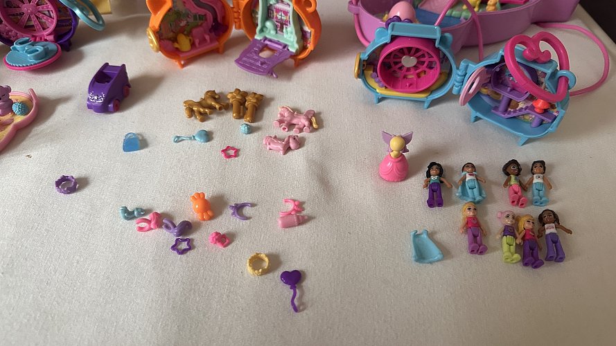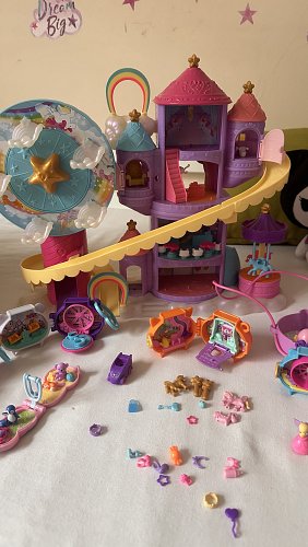 Riesiges Polly Pocket Konvolut – Regenbogen-Freizeitpark & Zubehör Ein riesiger Spielspaß für Polly Pocket Fans! Enthalten ist das große Freizeitpark-Schloss mit Riesenrad und Rutsche sowie viele weitere Schatullen, Kleinstfiguren und winziges Zubehör. Alles, was man für eine bunte Polly-Welt braucht.