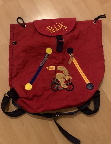Kinderrucksack der Marke Die Spiegelburg mit dem Motiv von Felix, dem Hasen.