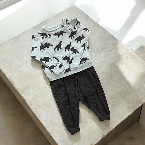 Wunderschönes zweiteiliges Set bestehend aus: 👕 einem hellblau-grauen Pullover mit dunkeln Dinosaurier-Motiven 👖 einer bequemen, dunkelgrauen Hose mit elastischem Bund Weiches, angenehm zu tragendes Material – perfekt für kühle Tage. Ideal als Geschenk oder für süße Alltagsfotos 💛 🚭🐾Nichtraucherhaushalt, keine Haustiere. Bei Fragen gerne melden 💌