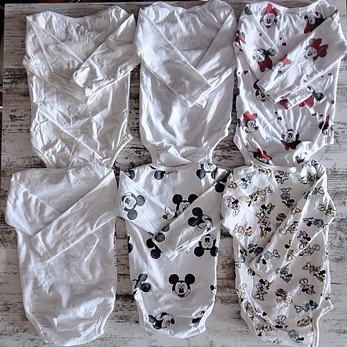 Verkaufe ein tolles Paket mit mehreren Langarmbodys für kleine Disney-Fans! Die Bodys zeigen verschiedene Designs von Mickey und Minnie Maus und sind überwiegend in Weiß gehalten, perfekt für den Alltag. Details: ​Größe: 86 Farbe: weiß / creme ​Design: Verschiedene Mickey und Minnie Maus Motive ​Material: Die Bodys bestehen aus einem Baumwoll-Elasthan-Gemisch (z.B. 95% Baumwolle, 5% Elasthan bei einigen Teilen). ​Zustand: Selten getragen, daher gut erhalten. ​Zahlung: Paypal möglich. ​Versand: Gegen Aufpreis möglich. ​Dies ist ein Privatverkauf, deshalb ist keine Rückgabe möglich. Der Verkauf erfolgt unter Ausschluss jeglicher Sachmängelhaftung.