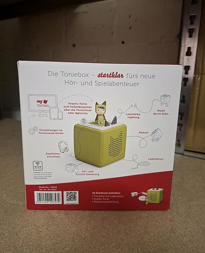 Neu und original verpackt Farbe: Grün Kaufpreis 99,95€ Das ist enthalten: - Toniebox in grün - exklusiver Kreativ-Tonie in grün - Ladestation zum Aufladen des Toniebox-Akkus - leicht verständliche Bedienungsanleitung Die Toniebox wurde noch nicht ausgepackt und in Betrieb genommen. Auf dem Bild 3 ist ersichtlich, dass die OVP noch nicht geöffnet wurde.