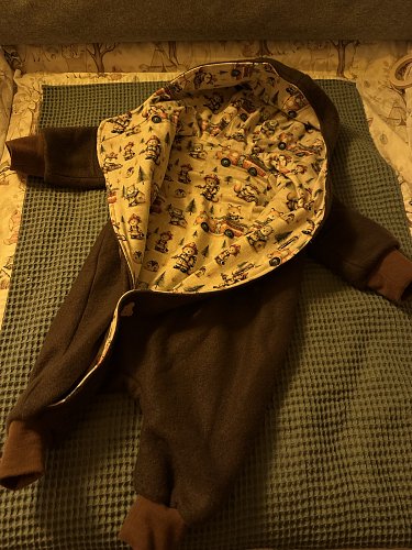 Der innere stoff ist mit süßem Feuerwehr Motiven. Leider nur zwei mal angehabt, da unser Sohn schon zu groß war.